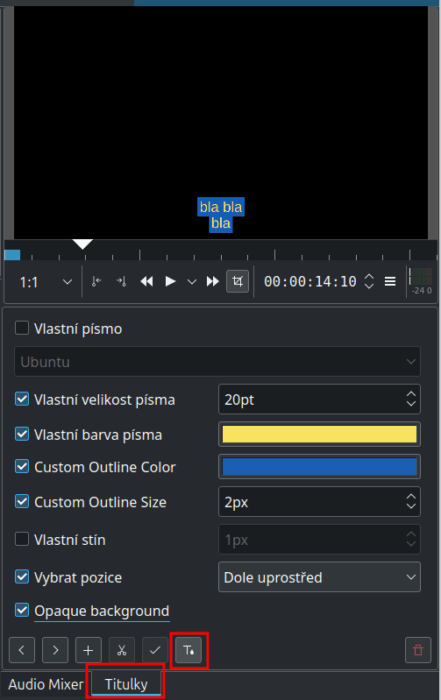 Úpravy překladových titulků v Kdenlive