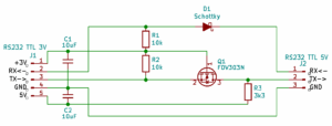 Pro možnost komunikace počítače se zařízeními přes rozhraní protokolem RS232, dvou napěťových úrovních 3V a 5V, jsem si poskládal sestavu: